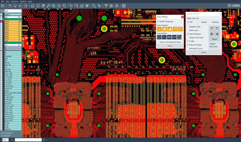 OpenCAM是由無(wú)錫東領(lǐng)智能科技股份有限公司開發(fā)的一款輕量級(jí)PCB CAM圖形查看器。基于C++開發(fā),具有超高的圖形顯示效率,完全支持ODB++8.1格式。